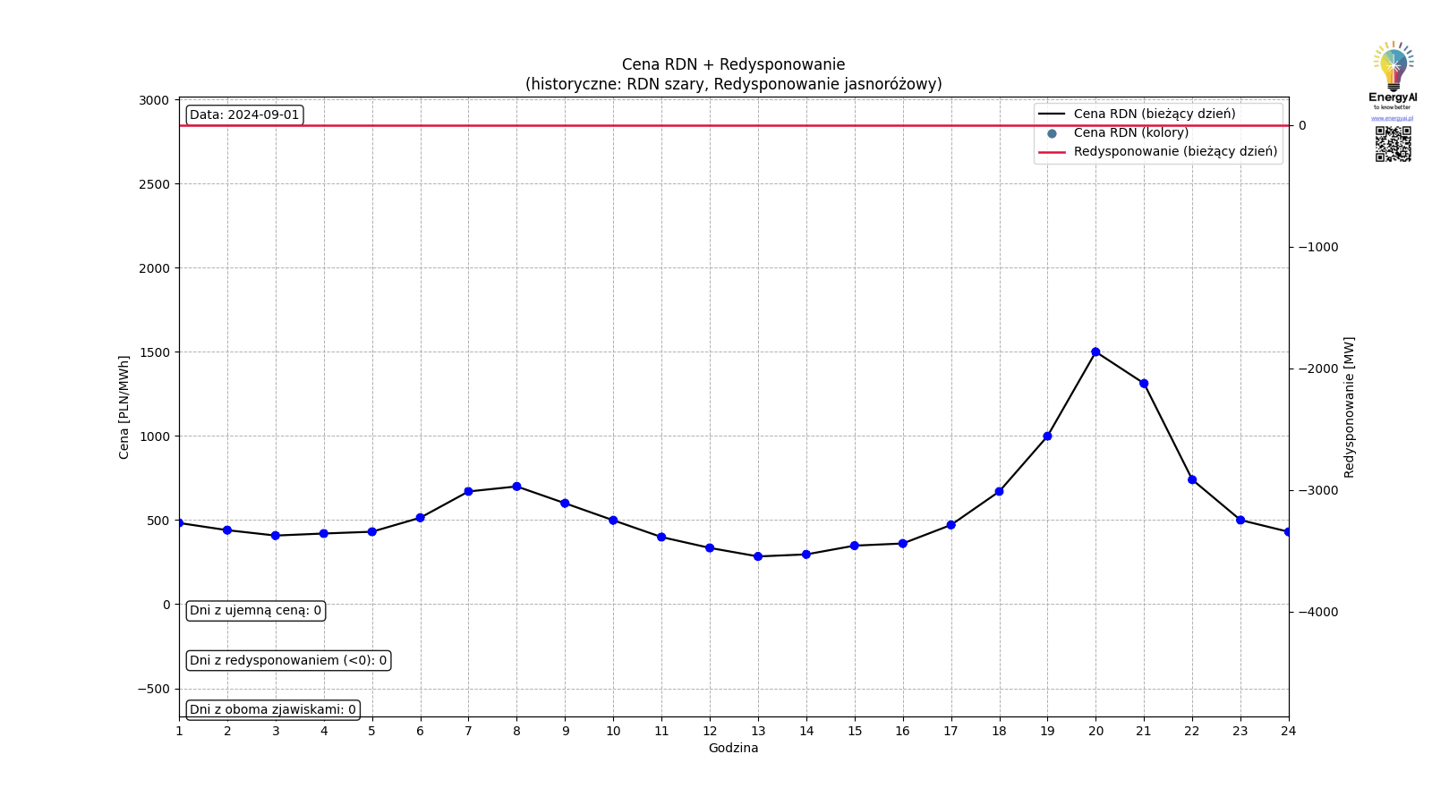 Redysponowanie i notowania cen na Rynku Dnia Następnego w okresie 1.09.2024 - 30.09.2025.